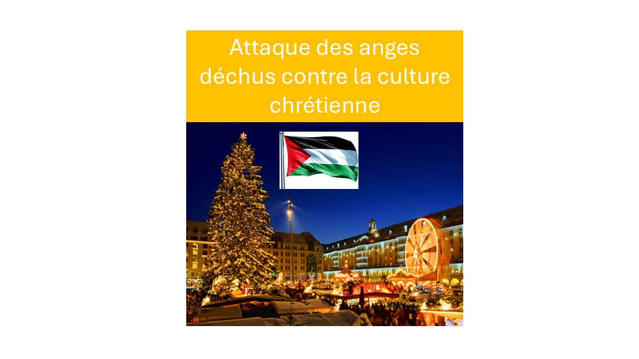 Ces derniers jours, plusieurs marchés de Noël en Europe ont été perturbés par des groupes pro-palestiniens. Noël n'est pas une fête que Dieu nous a demandée de célébrer. Cependant, c'est un symbole de la civilisation chrétienne, et l'ennemi s'empare de ces symboles pour atteindre son but : détruire tout ce qui est lié au Créateur.